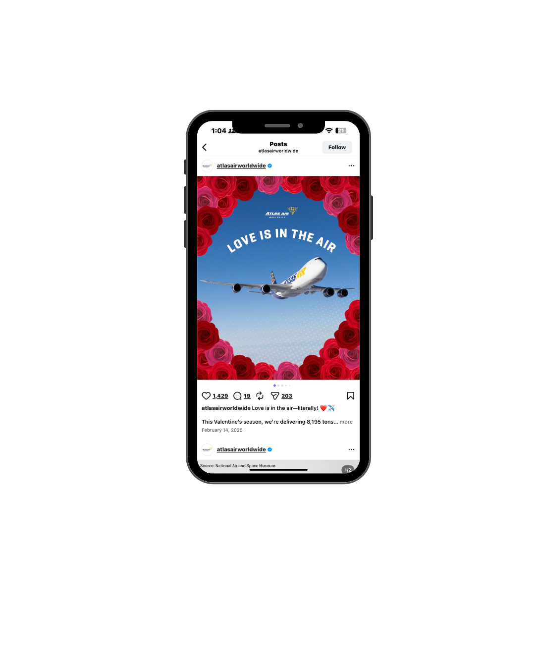 On Instagram specifically, we developed and executed a targeted strategy to integrate Atlas Air into the plane spotter community. This included engaging directly with spotters, interacting with hashtags and brand mentions, reposting and crediting photographers, and launching recurring photo contests. This approach drove sustained audience growth and strong engagement on the platform.